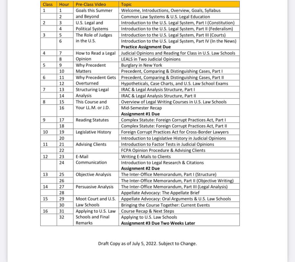 I have enjoyed teaching Legal English for American Law Schools (LEALS) again over Summer 2022. As we prepare for the final week of the course, I write to share that any law school outside the U.S. can set up a course like LEALS. And I highly recommend doing so for a number of reasons!