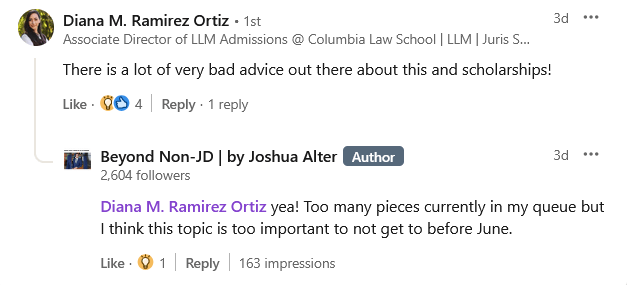 On a LinkedIn post on the complexities of LL.M. waitlists, she noted something that I think also applies in the context of deferring/reapplying.