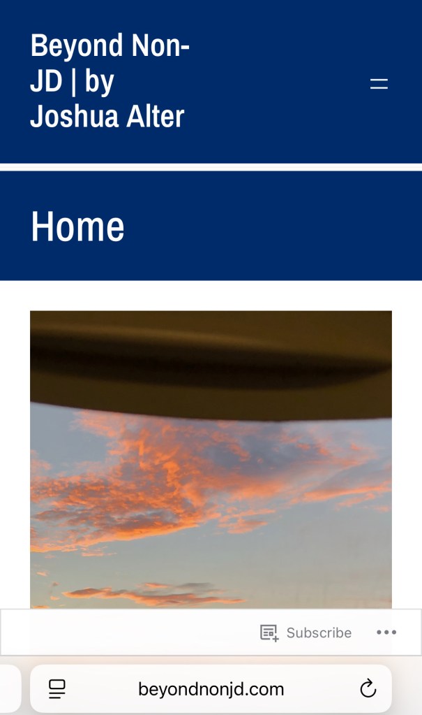 The two big updates today: BeyondNonJD.com (hopefully no more ads!) and a BeyondNonJD e-mail address (Joshua@BeyondNonJD.com).