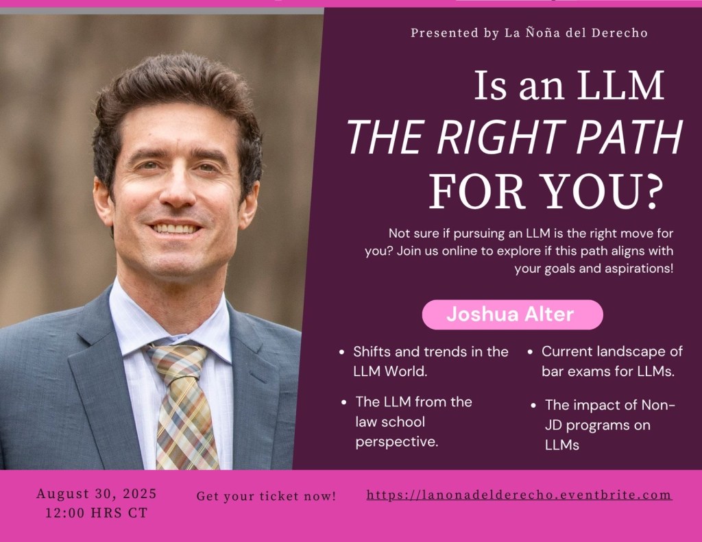 Maricela Muñoz (the person behind La Ñoña del Derecho) is putting on a wonderful webinar on August 30 (I’m only involved as a panelist, but I am really happy to support all her efforts!). You can learn more about ticket pricing here.